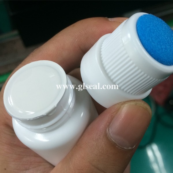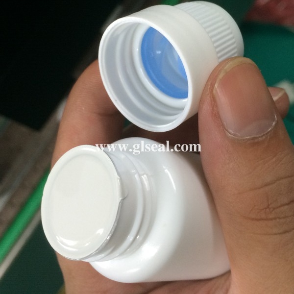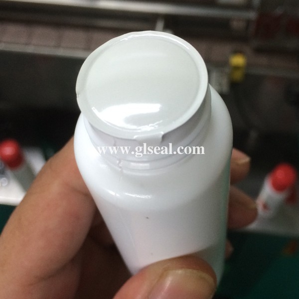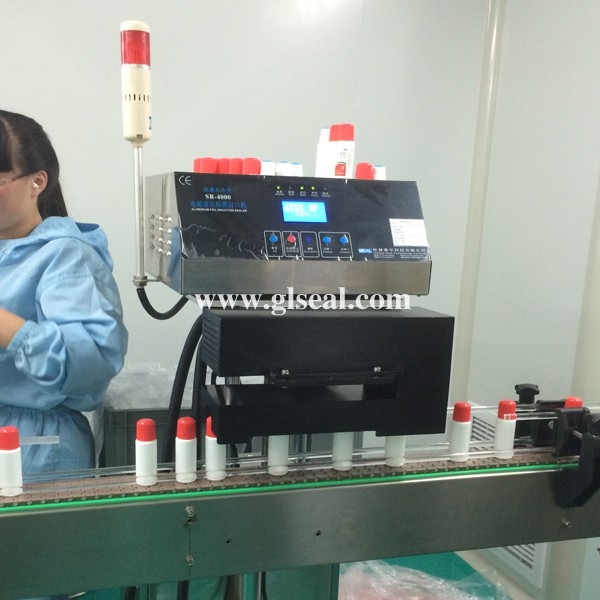 實(shí)拍某藥廠高蓋瓶子封口,蓋頂距鋁箔垂直高度為4.5cm,一般封口機(jī)無(wú)法實(shí)現(xiàn)正常封口,直到使用賽爾牌封口機(jī)。